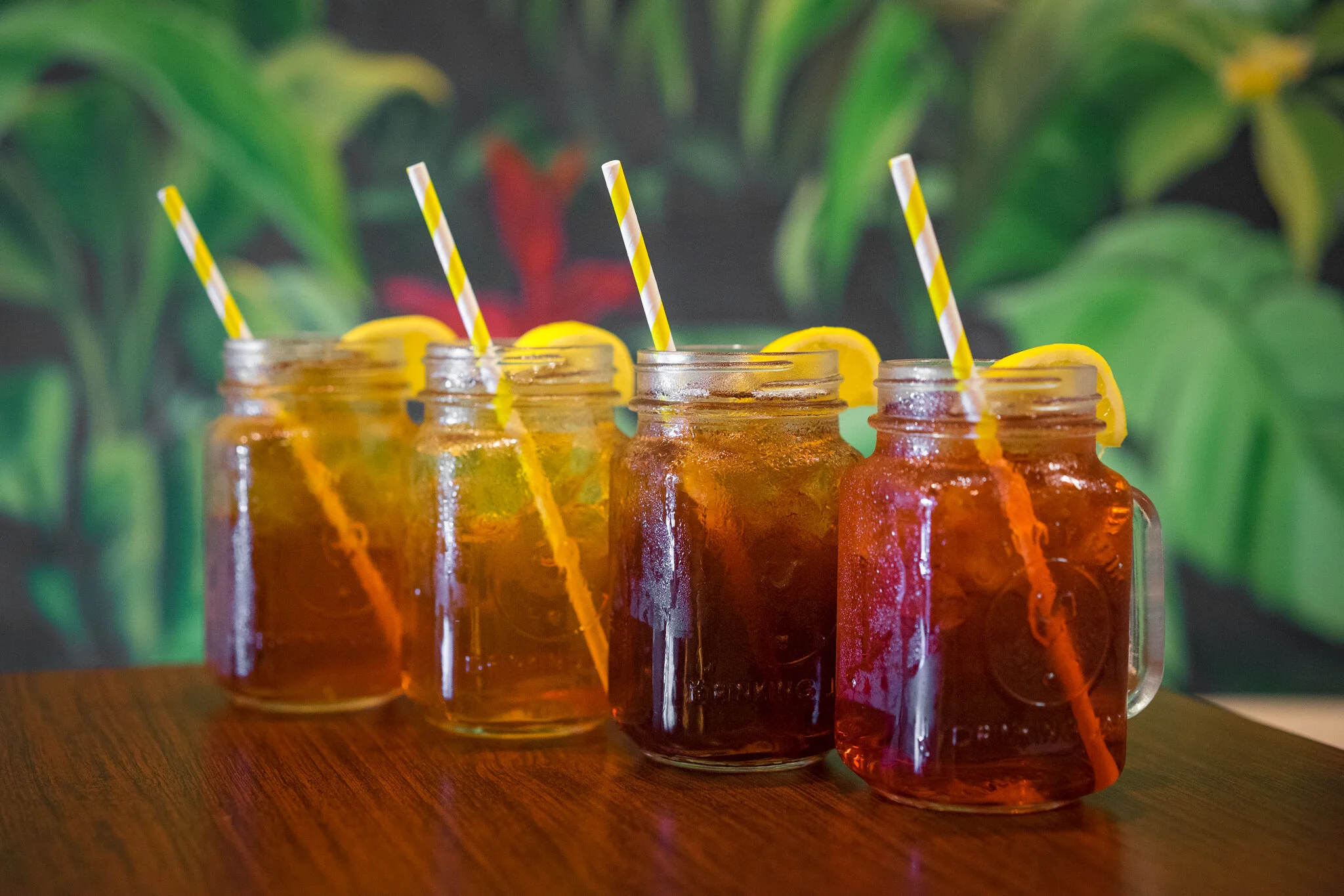 On walking into Sunburst your eyes are immediately drawn to an 18ft. by 6ft. mural of beautiful Costa Rica, The interior and exterior are a mix of warm welcoming colors and an interesting collection of tables, chairs .and wall art.